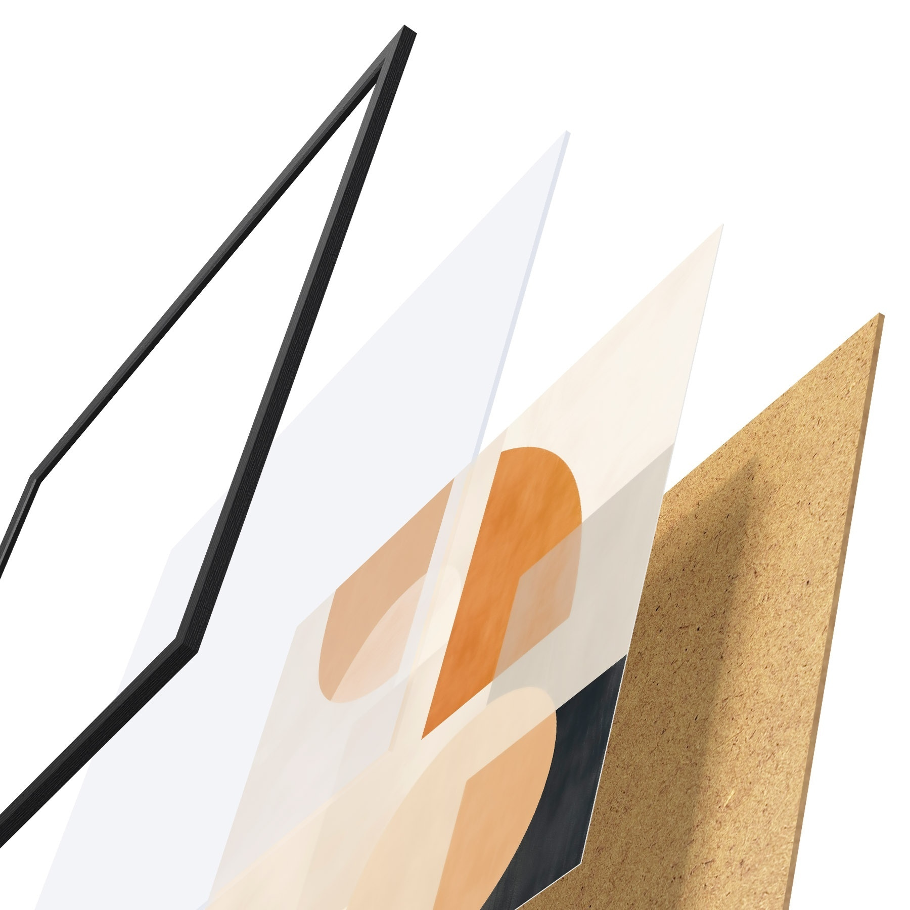 Plakat składa się z ramy, pleksi, wydrukowanego obrazu i podkładu z płyty wiórowej. Plakat można natychmiast zawiesić na ścianie dzięki uchwytom z tyłu.