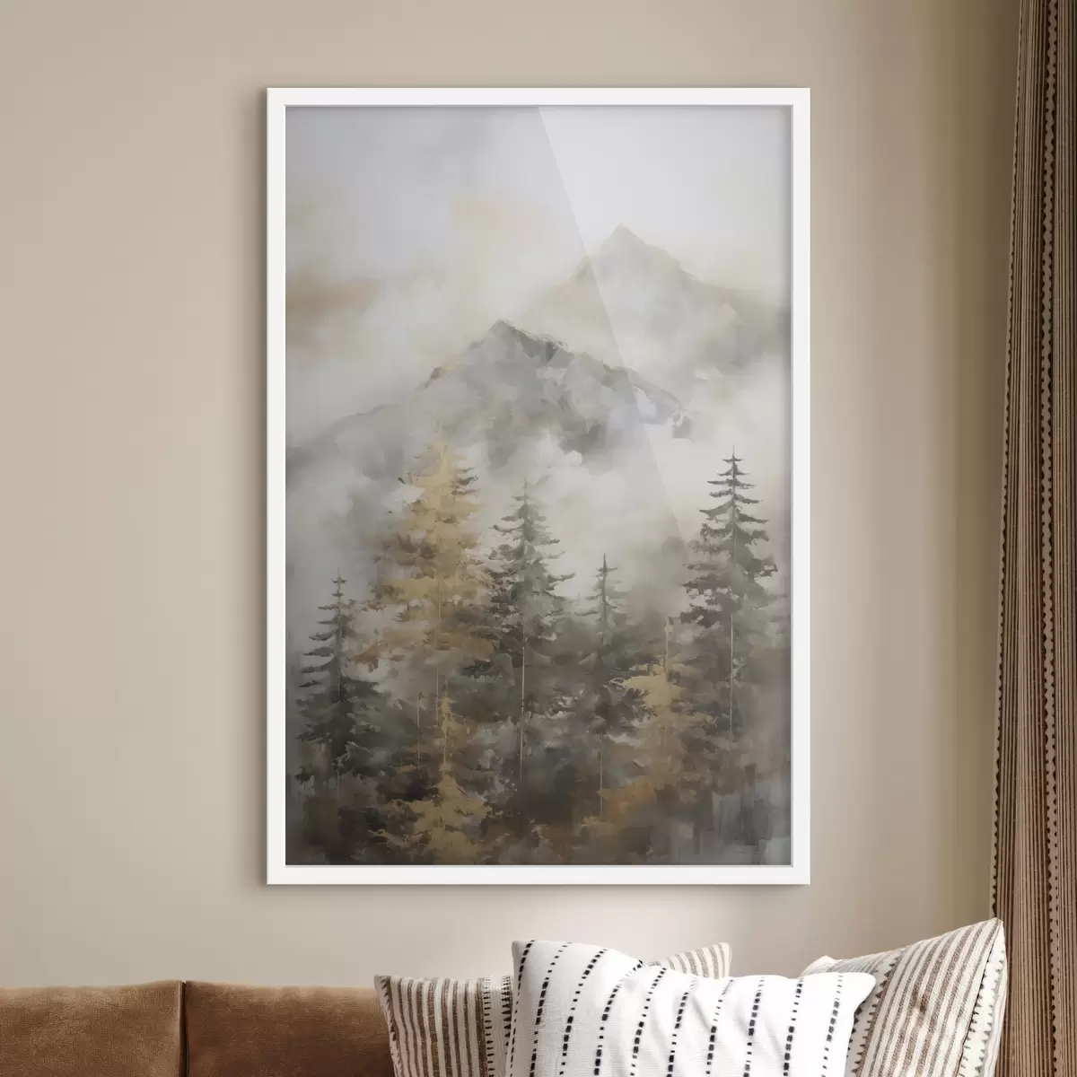 Poster Las na tle gór imitacja obrazu Nr f46670