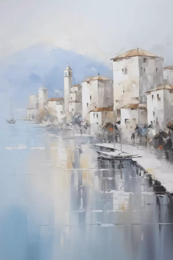 Poster Abstrakcyjne domy nad zatoką imitacja obrazu Nr f46673