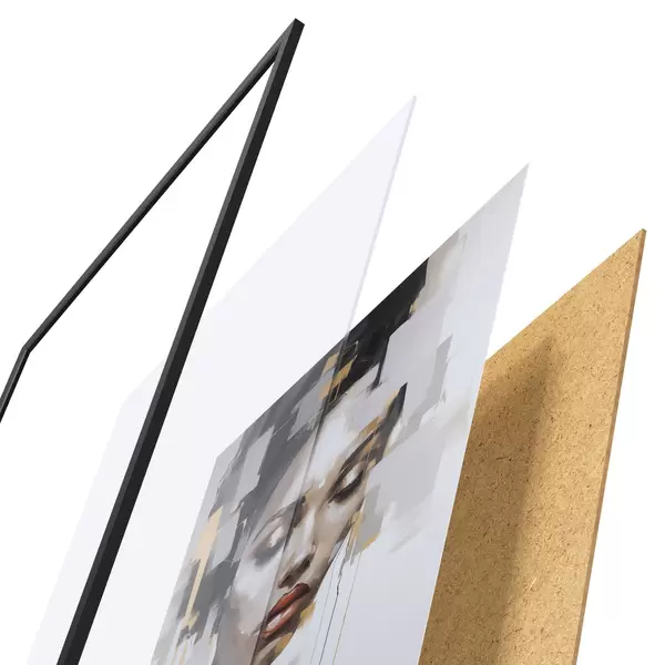 Plakat składa się z ramy, pleksi, wydrukowanego obrazu i podkładu z płyty wiórowej. Plakat można natychmiast zawiesić na ścianie dzięki uchwytom z tyłu.