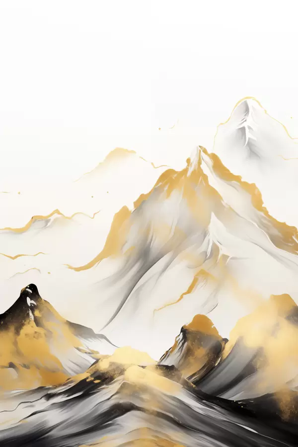 Plakat Teksturowane żółto-czarne góry ze śnieżnymi szczytami, styl malarstwa tuszem, minimalistyczny łańcuch górski f46683