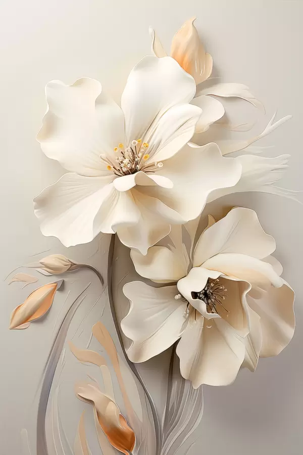 Poster Białe kwiaty, płatki z delikatnymi cieniami, jasnobeżowe tło, elegancka kompozycja, minimalistyczny styl Nr f46700