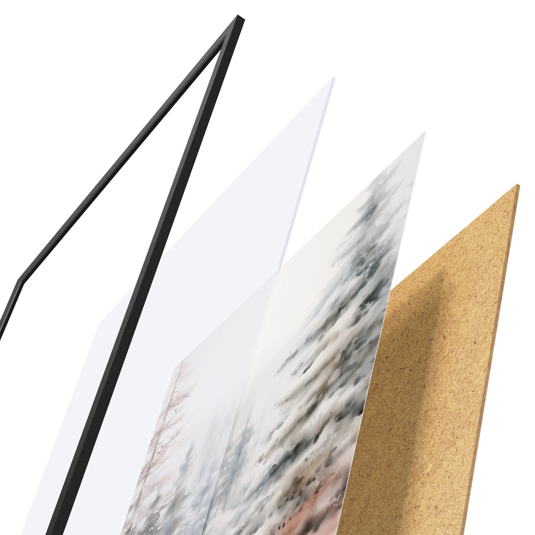 Plakat składa się z ramy, pleksi, wydrukowanego obrazu i podkładu z płyty wiórowej. Plakat można natychmiast zawiesić na ścianie dzięki uchwytom z tyłu.