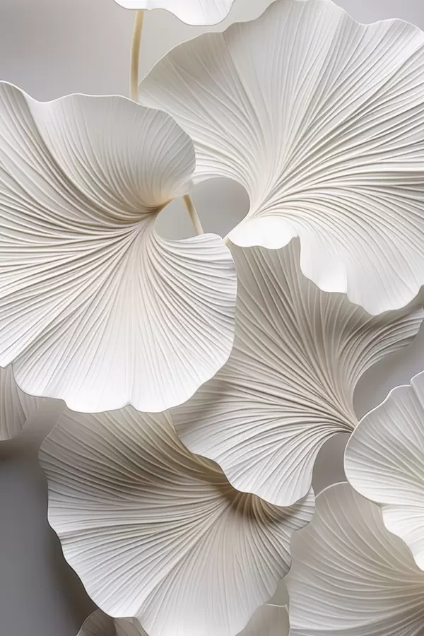 Poster Białe liście miłorzębu japońskiego z wyraźnymi żyłkami, delikatnym oświetleniem, eleganckim i minimalistycznym wzorem Nr f46705