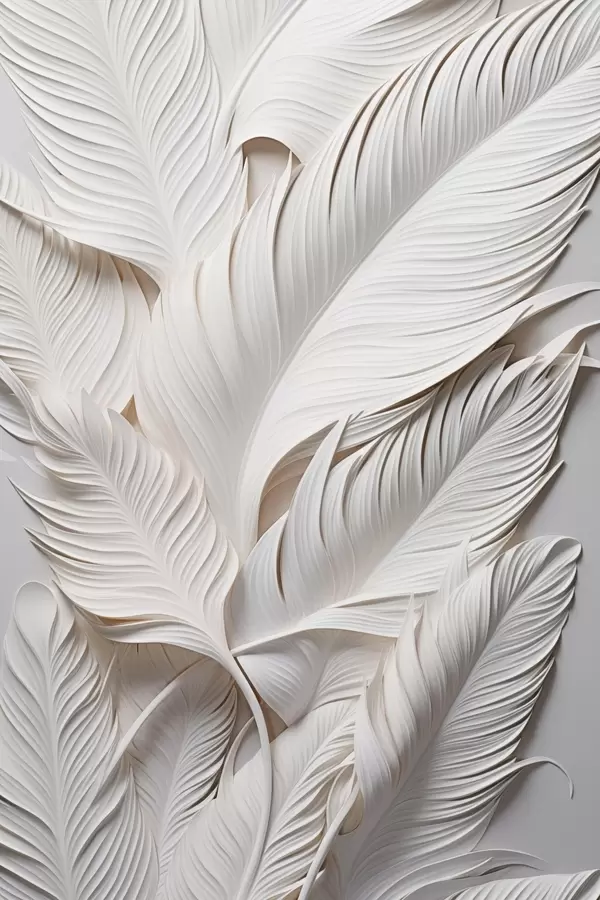 Poster Białe liście z misternymi detalami, tworzące efekt tekstury i warstwowości, minimalistyczna sztuka Nr f46706