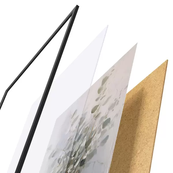 Plakat składa się z ramy, pleksi, wydrukowanego obrazu i podkładu z płyty wiórowej. Plakat można natychmiast zawiesić na ścianie dzięki uchwytom z tyłu.