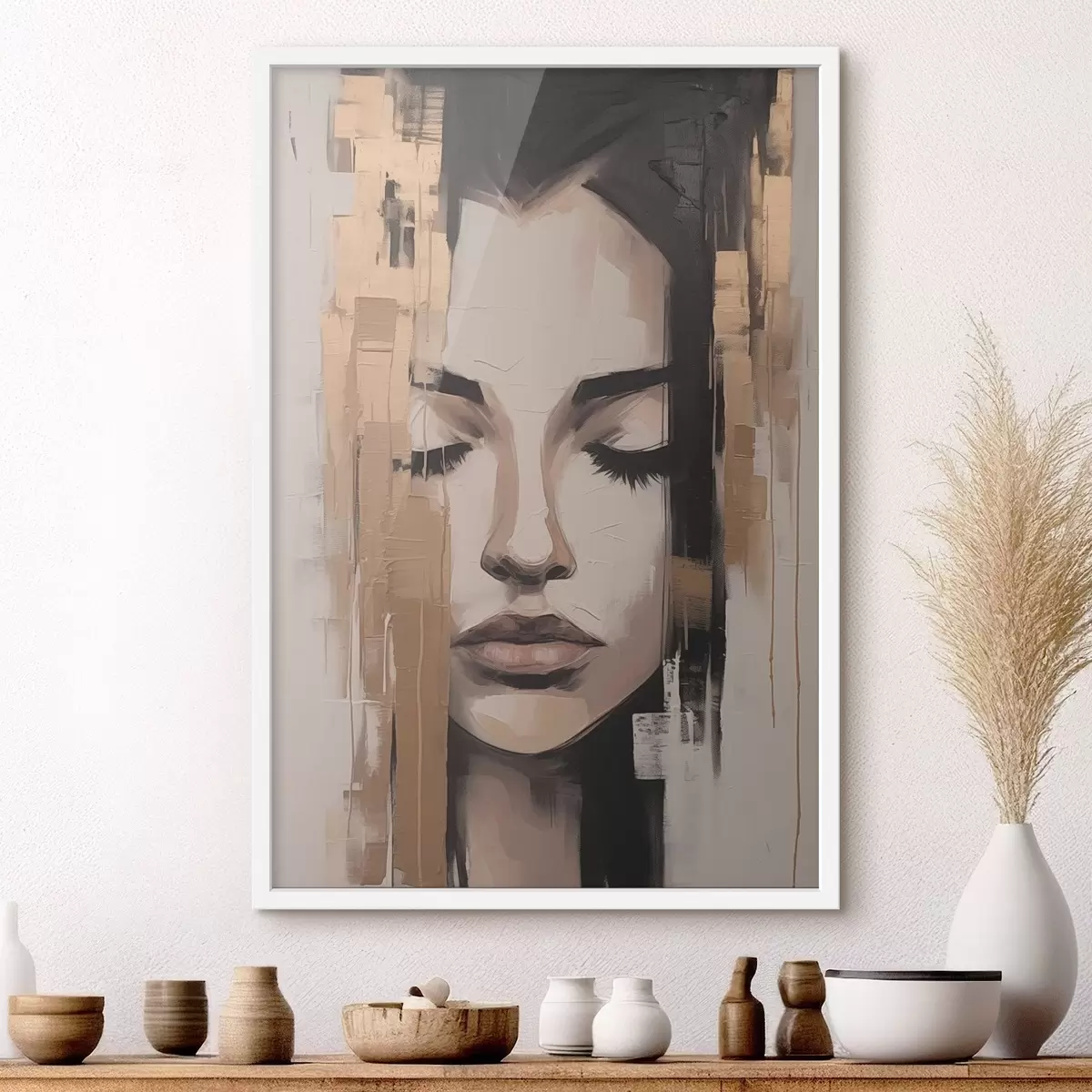 Plakat Portret kobiety. Abstrakcyjne pociągnięcia pędzla f46733