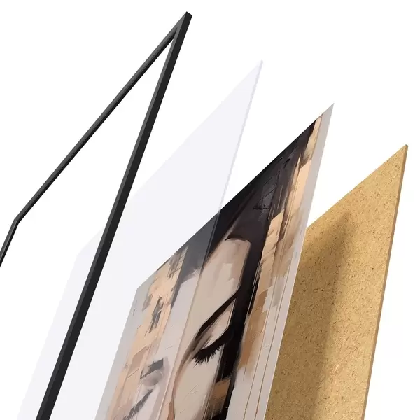 Plakat składa się z ramy, pleksi, wydrukowanego obrazu i podkładu z płyty wiórowej. Plakat można natychmiast zawiesić na ścianie dzięki uchwytom z tyłu.
