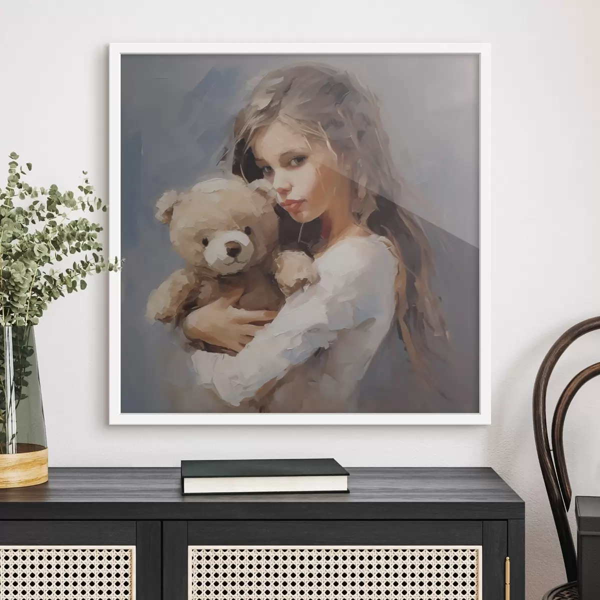 Plakat Dziewczynka z pluszowym misiem, imitacja obrazu f46746