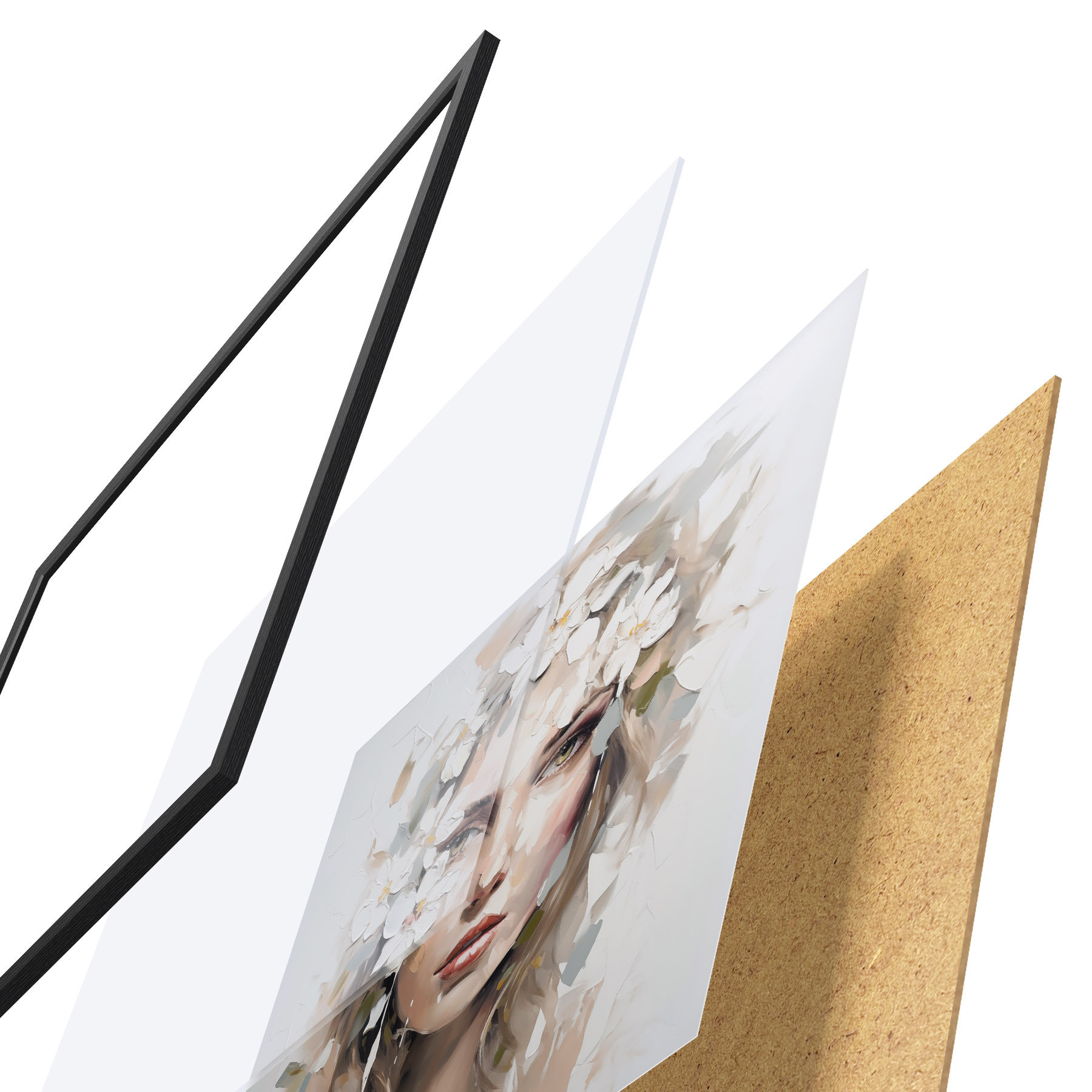 Plakat składa się z ramy, pleksi, wydrukowanego obrazu i podkładu z płyty wiórowej. Plakat można natychmiast zawiesić na ścianie dzięki uchwytom z tyłu.