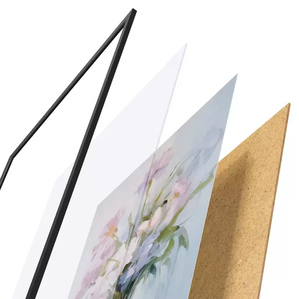Plakat składa się z ramy, pleksi, wydrukowanego obrazu i podkładu z płyty wiórowej. Plakat można natychmiast zawiesić na ścianie dzięki uchwytom z tyłu.