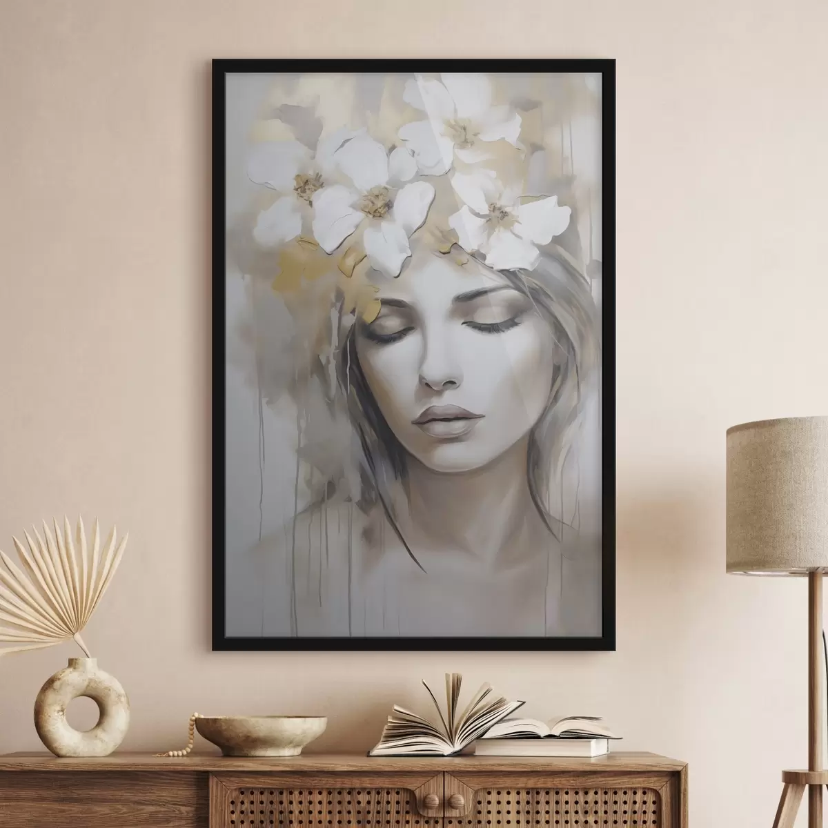 Poster Abstrakcyjny portret dziewczyny z kwiatami, imitacja obrazu Nr f46756