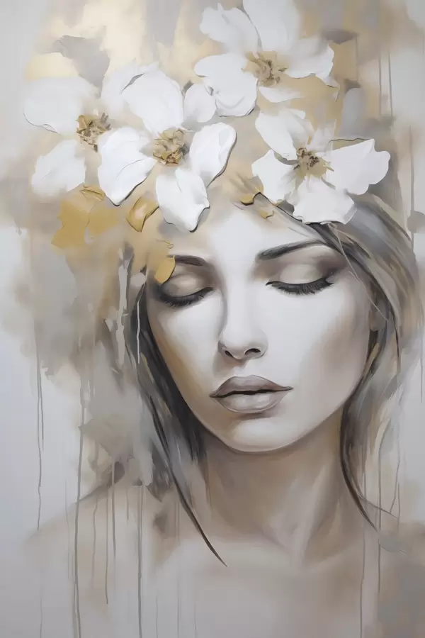 Poster Abstrakcyjny portret dziewczyny z kwiatami, imitacja obrazu Nr f46756