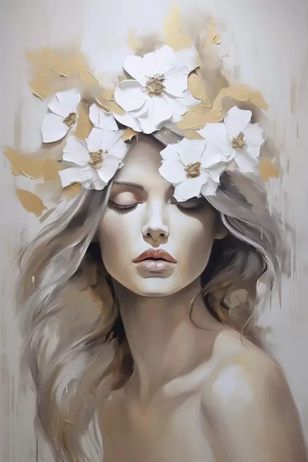Poster Abstrakcyjny portret dziewczyny z kwiatami Nr f46757