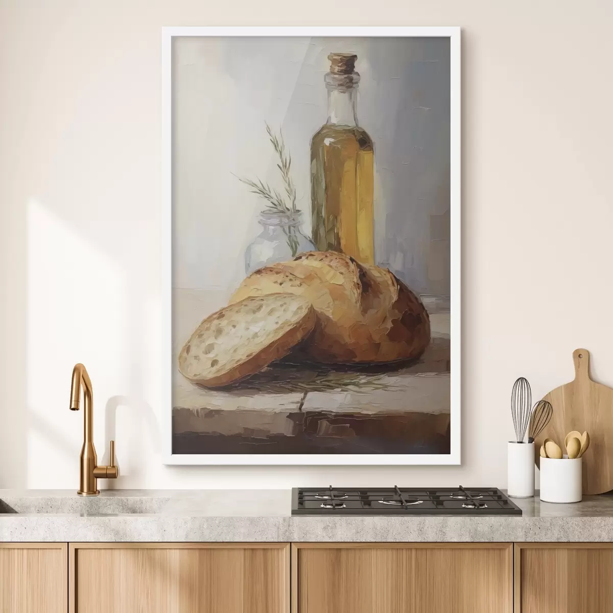 Poster Chleb i butelka oliwy, imitacja obrazu Nr f46759