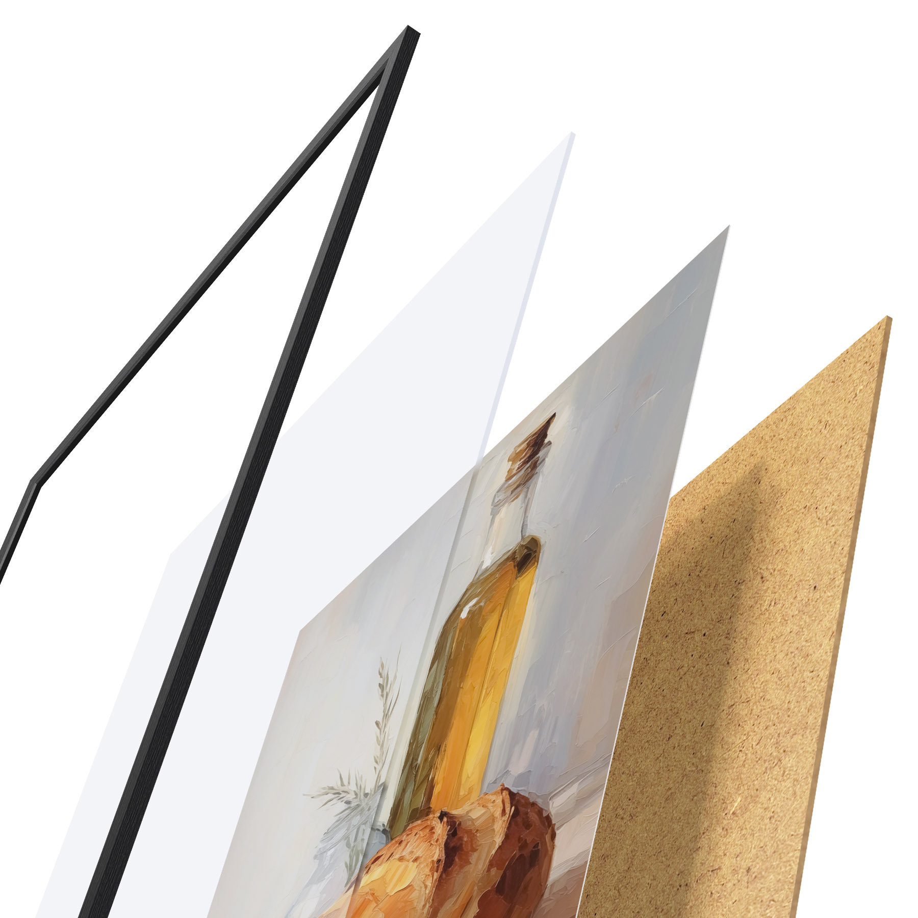 Plakat składa się z ramy, pleksi, wydrukowanego obrazu i podkładu z płyty wiórowej. Plakat można natychmiast zawiesić na ścianie dzięki uchwytom z tyłu.