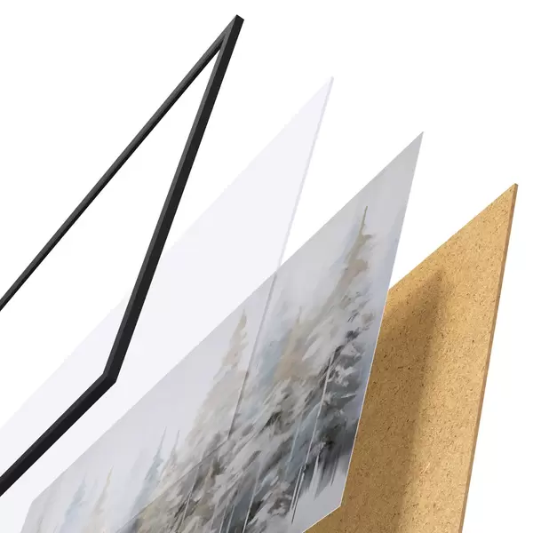Plakat składa się z ramy, pleksi, wydrukowanego obrazu i podkładu z płyty wiórowej. Plakat można natychmiast zawiesić na ścianie dzięki uchwytom z tyłu.