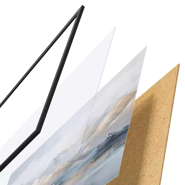 Plakat składa się z ramy, pleksi, wydrukowanego obrazu i podkładu z płyty wiórowej. Plakat można natychmiast zawiesić na ścianie dzięki uchwytom z tyłu.