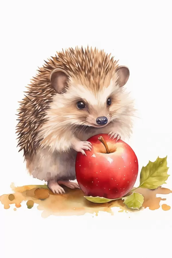 Poster Jeż i jabłko, imitacja akwareli Nr f46769
