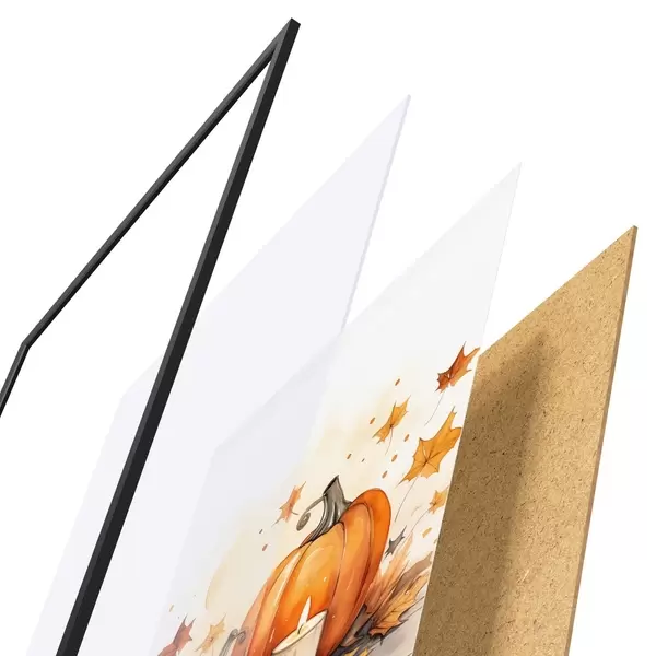 Plakat składa się z ramy, pleksi, wydrukowanego obrazu i podkładu z płyty wiórowej. Plakat można natychmiast zawiesić na ścianie dzięki uchwytom z tyłu.