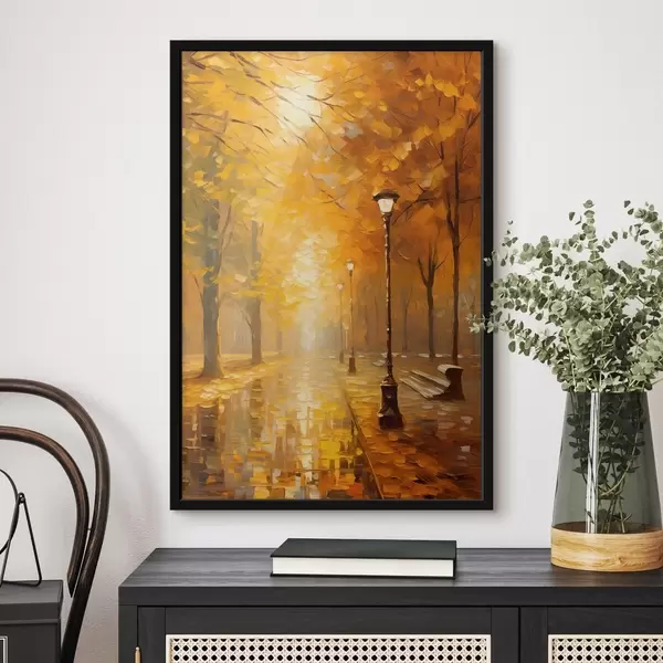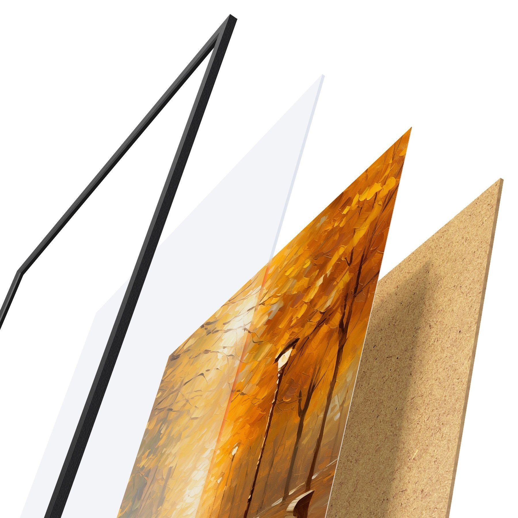 Plakat składa się z ramy, pleksi, wydrukowanego obrazu i podkładu z płyty wiórowej. Plakat można natychmiast zawiesić na ścianie dzięki uchwytom z tyłu.