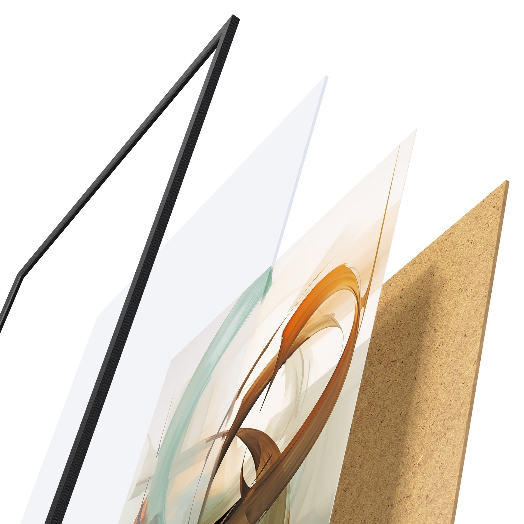 Plakat składa się z ramy, pleksi, wydrukowanego obrazu i podkładu z płyty wiórowej. Plakat można natychmiast zawiesić na ścianie dzięki uchwytom z tyłu.