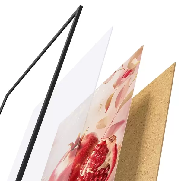 Plakat składa się z ramy, pleksi, wydrukowanego obrazu i podkładu z płyty wiórowej. Plakat można natychmiast zawiesić na ścianie dzięki uchwytom z tyłu.