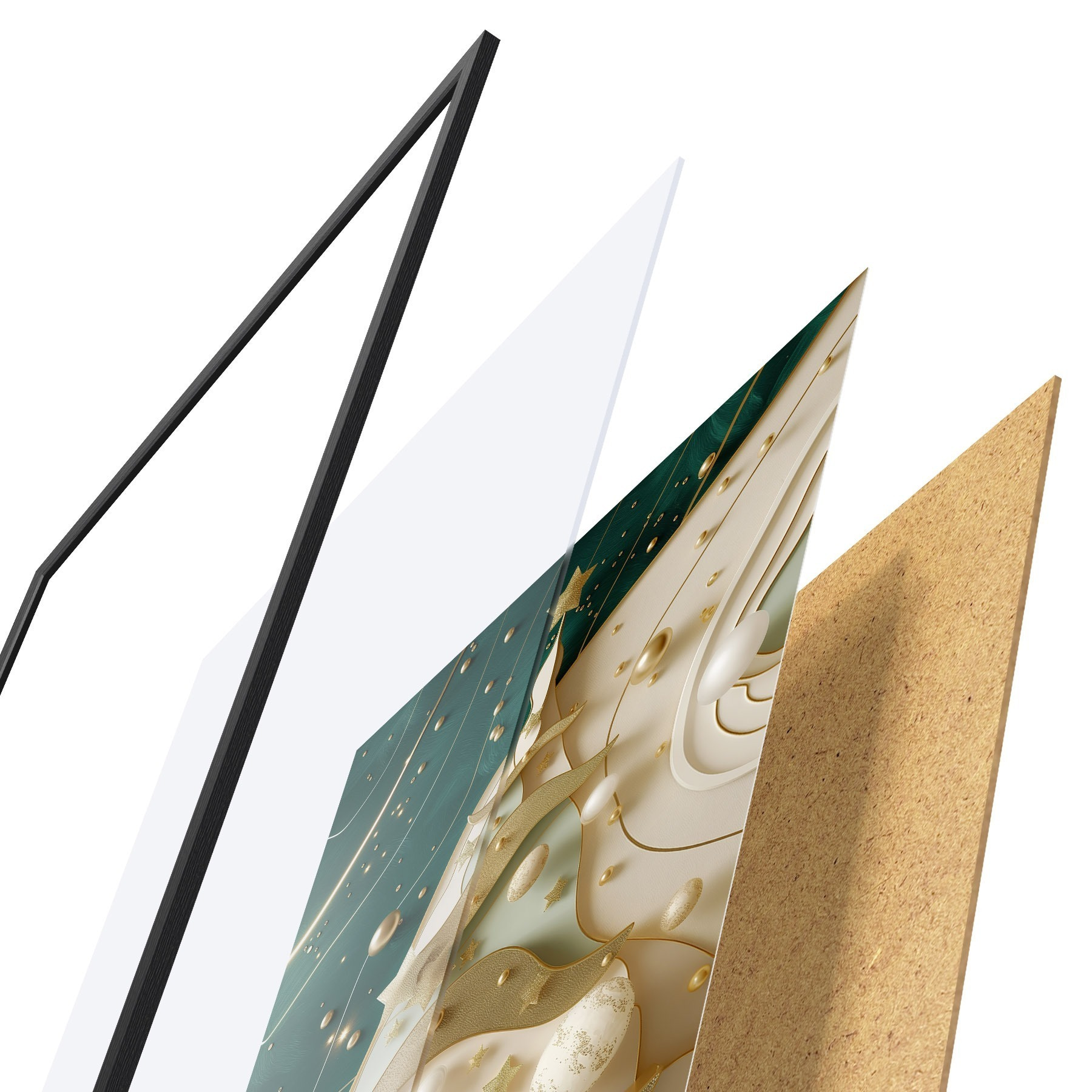 Plakat składa się z ramy, pleksi, wydrukowanego obrazu i podkładu z płyty wiórowej. Plakat można natychmiast zawiesić na ścianie dzięki uchwytom z tyłu.