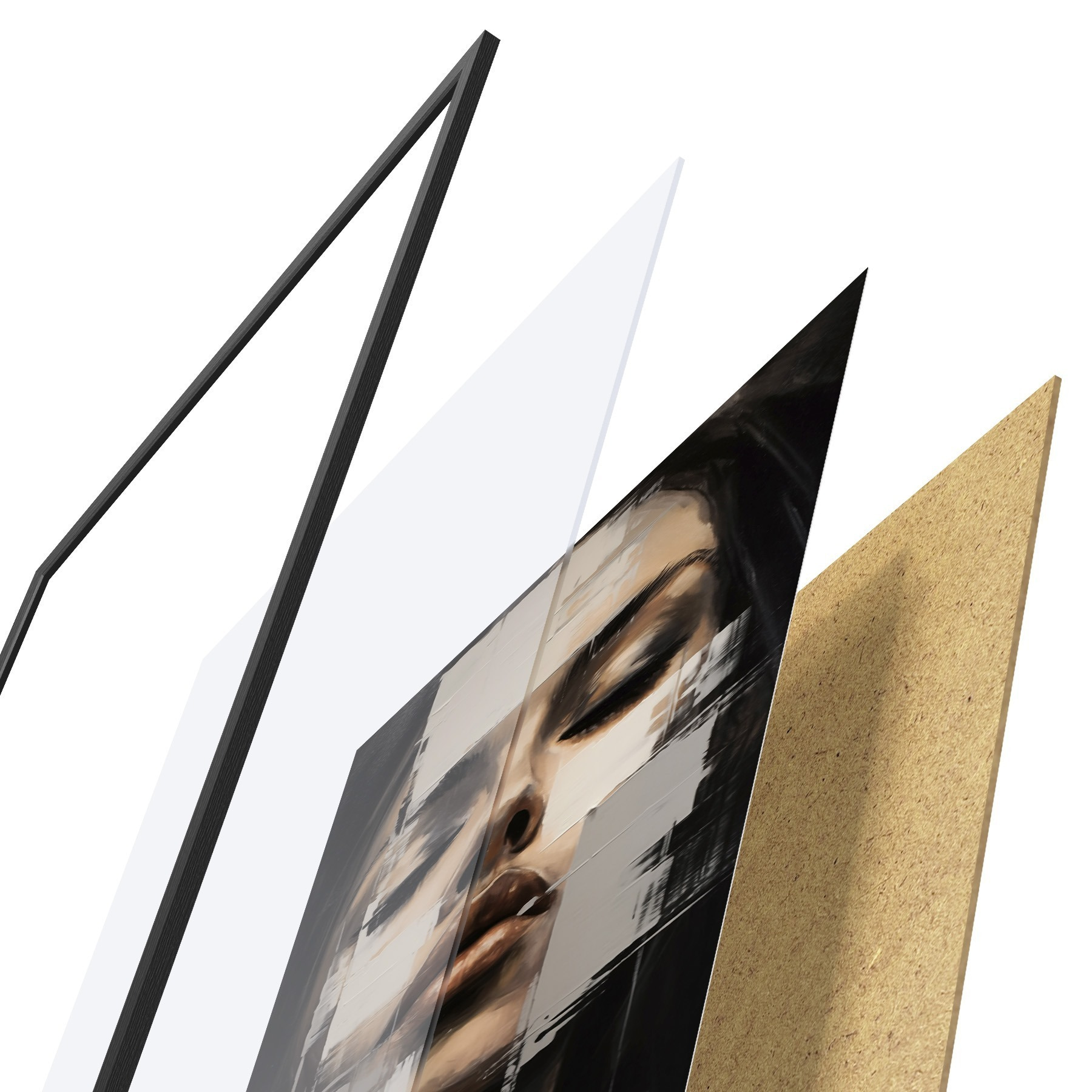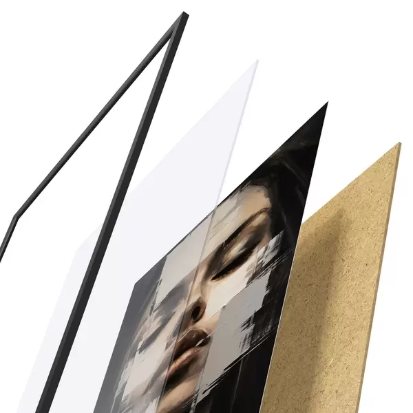 Plakat składa się z ramy, pleksi, wydrukowanego obrazu i podkładu z płyty wiórowej. Plakat można natychmiast zawiesić na ścianie dzięki uchwytom z tyłu.