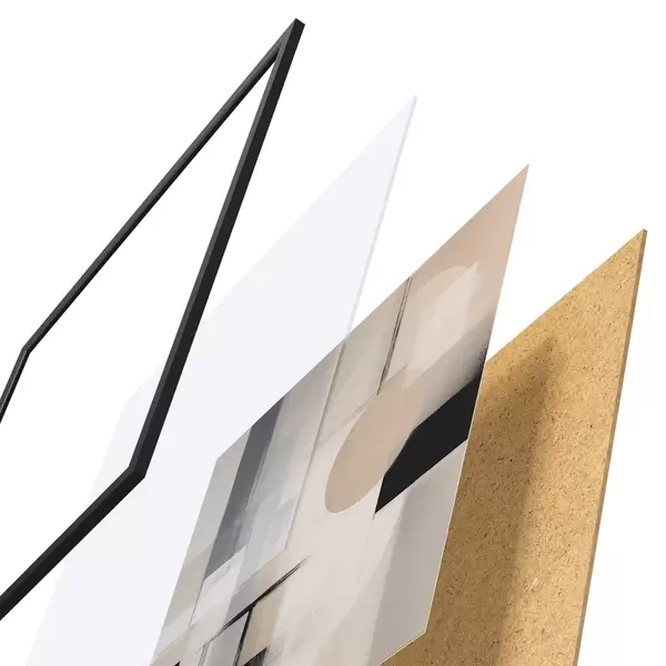Plakat składa się z ramy, pleksi, wydrukowanego obrazu i podkładu z płyty wiórowej. Plakat można natychmiast zawiesić na ścianie dzięki uchwytom z tyłu.