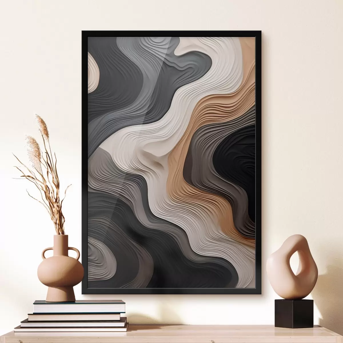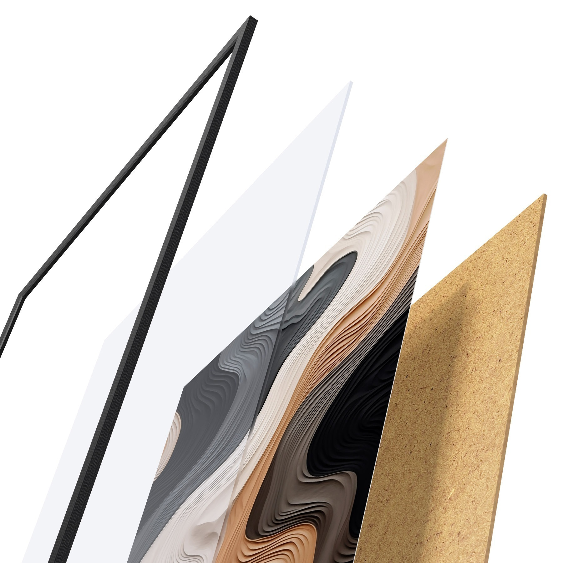 Plakat składa się z ramy, pleksi, wydrukowanego obrazu i podkładu z płyty wiórowej. Plakat można natychmiast zawiesić na ścianie dzięki uchwytom z tyłu.