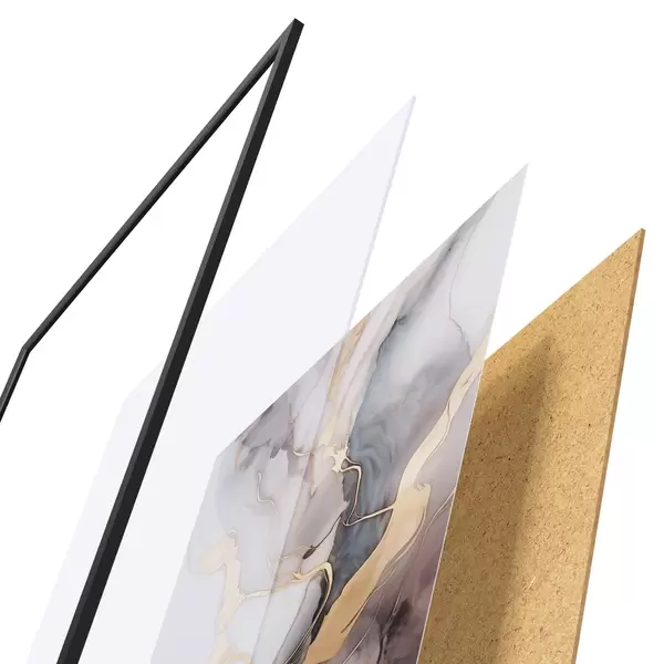 Plakat składa się z ramy, pleksi, wydrukowanego obrazu i podkładu z płyty wiórowej. Plakat można natychmiast zawiesić na ścianie dzięki uchwytom z tyłu.
