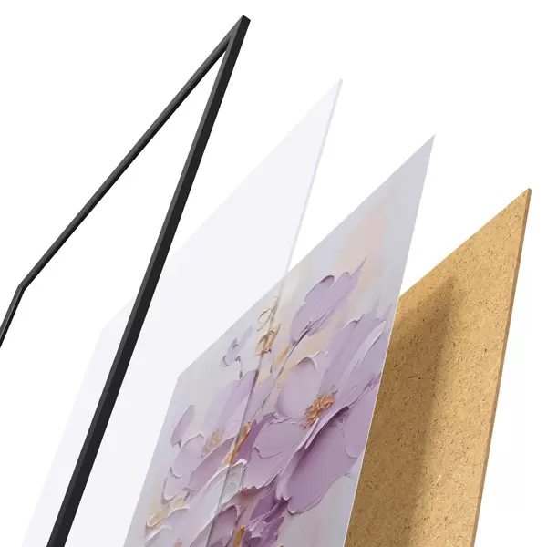 Plakat składa się z ramy, pleksi, wydrukowanego obrazu i podkładu z płyty wiórowej. Plakat można natychmiast zawiesić na ścianie dzięki uchwytom z tyłu.