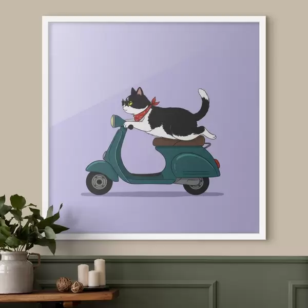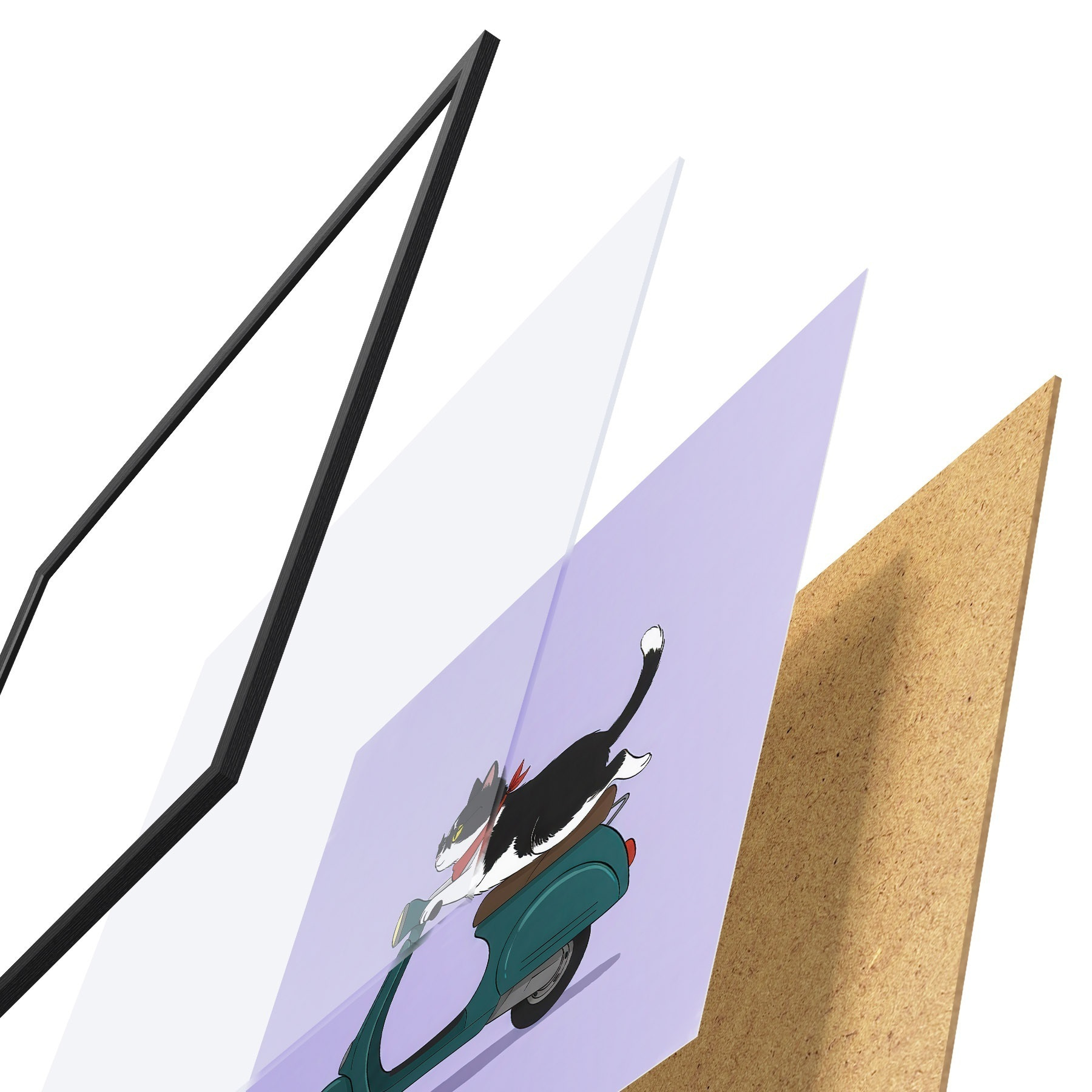 Plakat składa się z ramy, pleksi, wydrukowanego obrazu i podkładu z płyty wiórowej. Plakat można natychmiast zawiesić na ścianie dzięki uchwytom z tyłu.