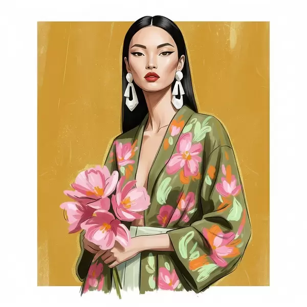 Plakat Dziewczyna z bukietem kwiatów f46850