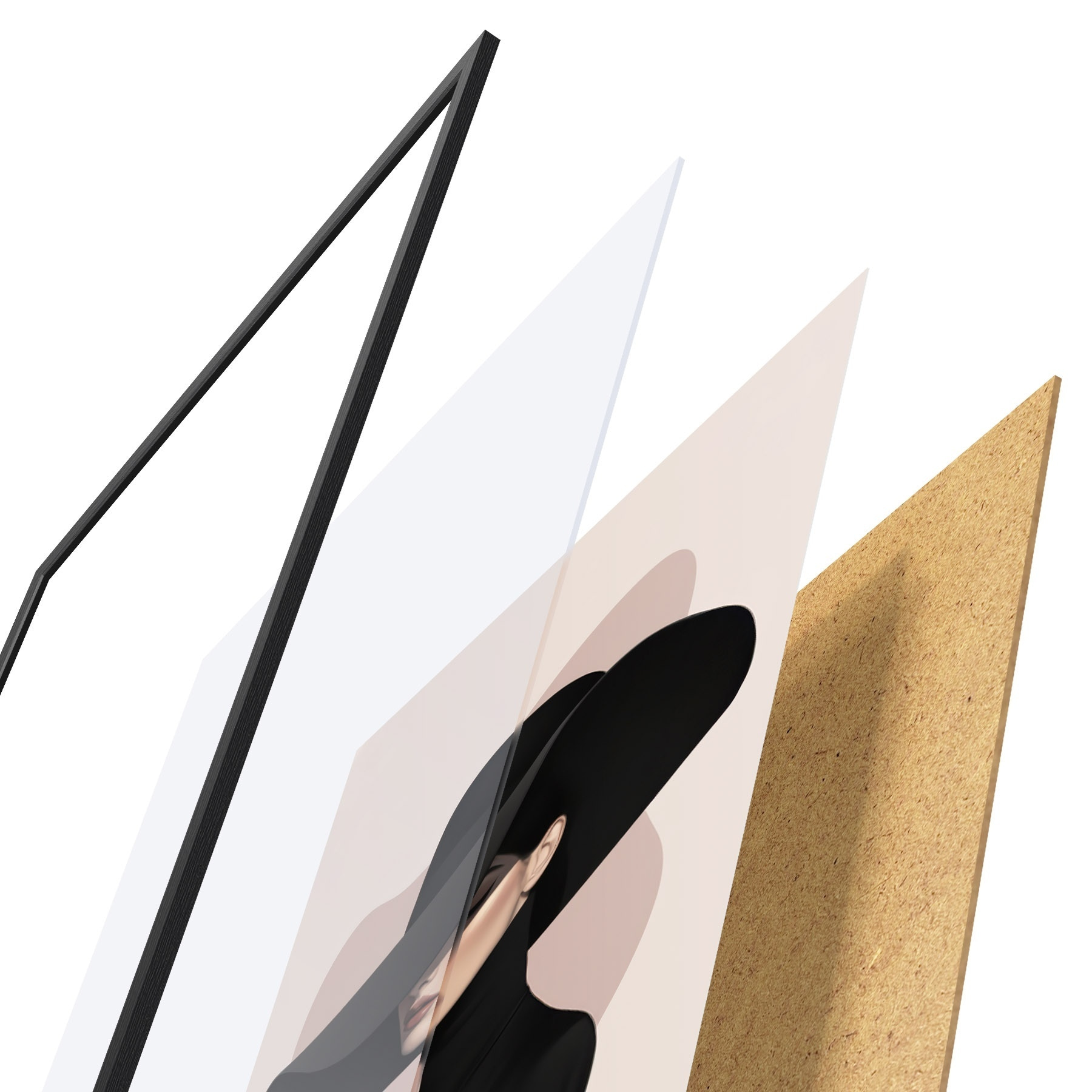 Plakat składa się z ramy, pleksi, wydrukowanego obrazu i podkładu z płyty wiórowej. Plakat można natychmiast zawiesić na ścianie dzięki uchwytom z tyłu.