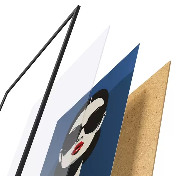 Plakat składa się z ramy, pleksi, wydrukowanego obrazu i podkładu z płyty wiórowej. Plakat można natychmiast zawiesić na ścianie dzięki uchwytom z tyłu.