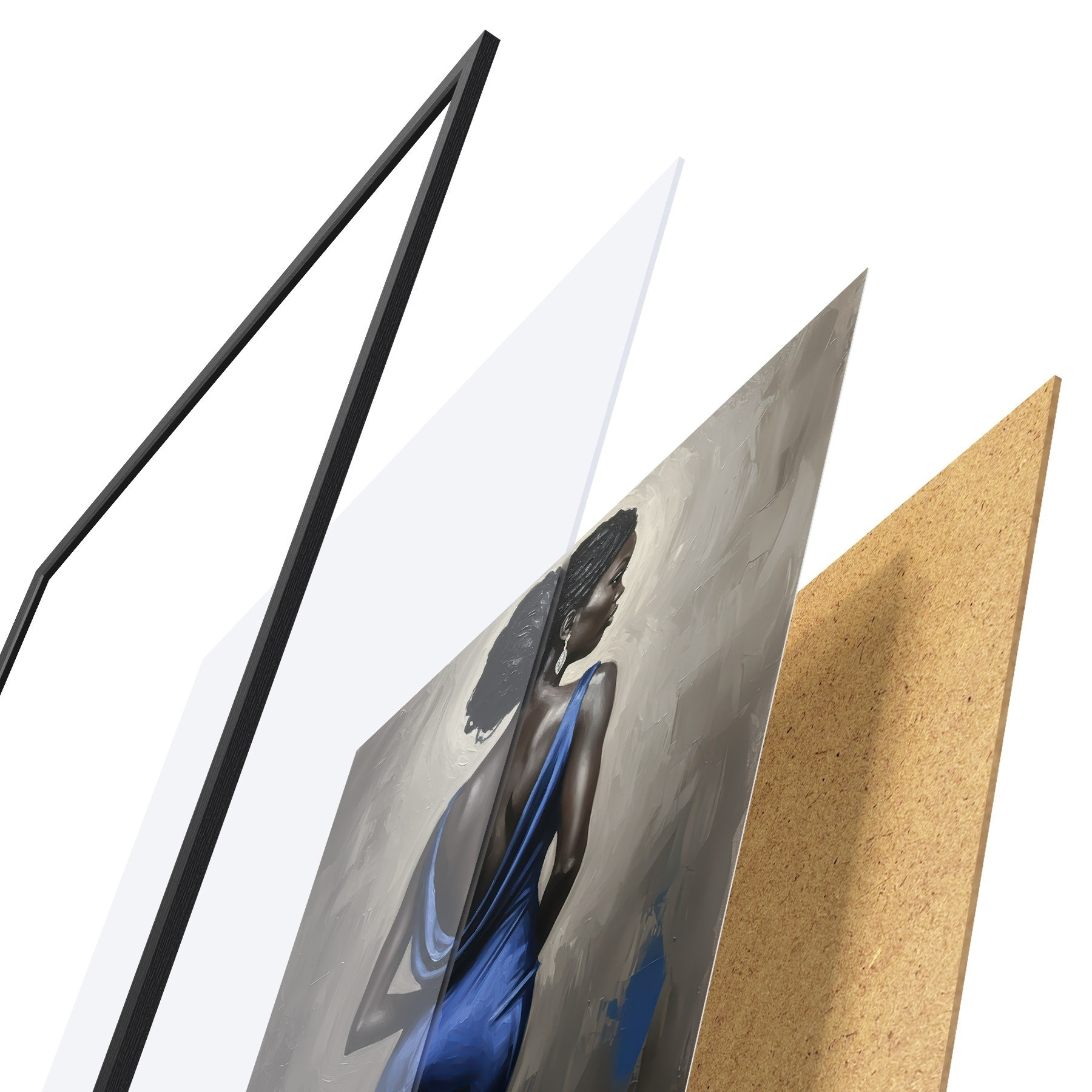 Plakat składa się z ramy, pleksi, wydrukowanego obrazu i podkładu z płyty wiórowej. Plakat można natychmiast zawiesić na ścianie dzięki uchwytom z tyłu.