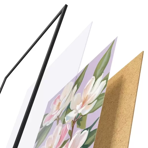Plakat składa się z ramy, pleksi, wydrukowanego obrazu i podkładu z płyty wiórowej. Plakat można natychmiast zawiesić na ścianie dzięki uchwytom z tyłu.