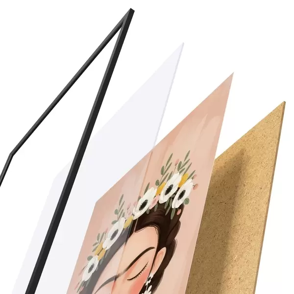 Plakat składa się z ramy, pleksi, wydrukowanego obrazu i podkładu z płyty wiórowej. Plakat można natychmiast zawiesić na ścianie dzięki uchwytom z tyłu.