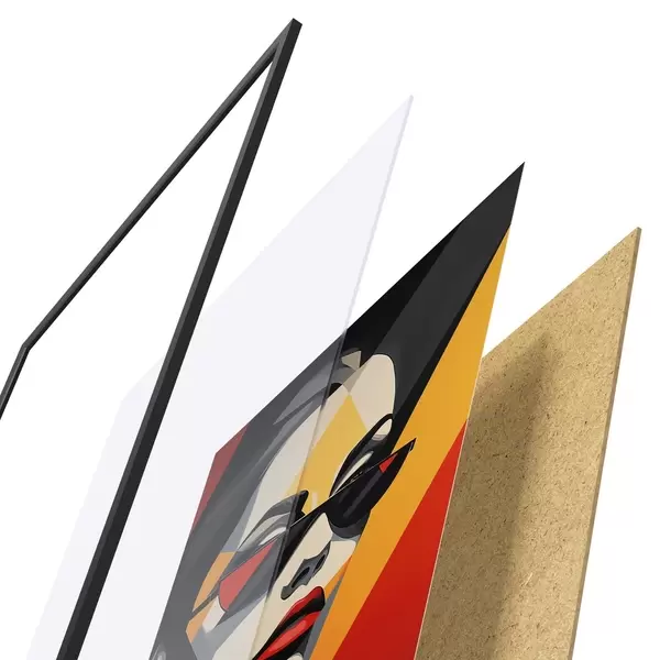 Plakat składa się z ramy, pleksi, wydrukowanego obrazu i podkładu z płyty wiórowej. Plakat można natychmiast zawiesić na ścianie dzięki uchwytom z tyłu.