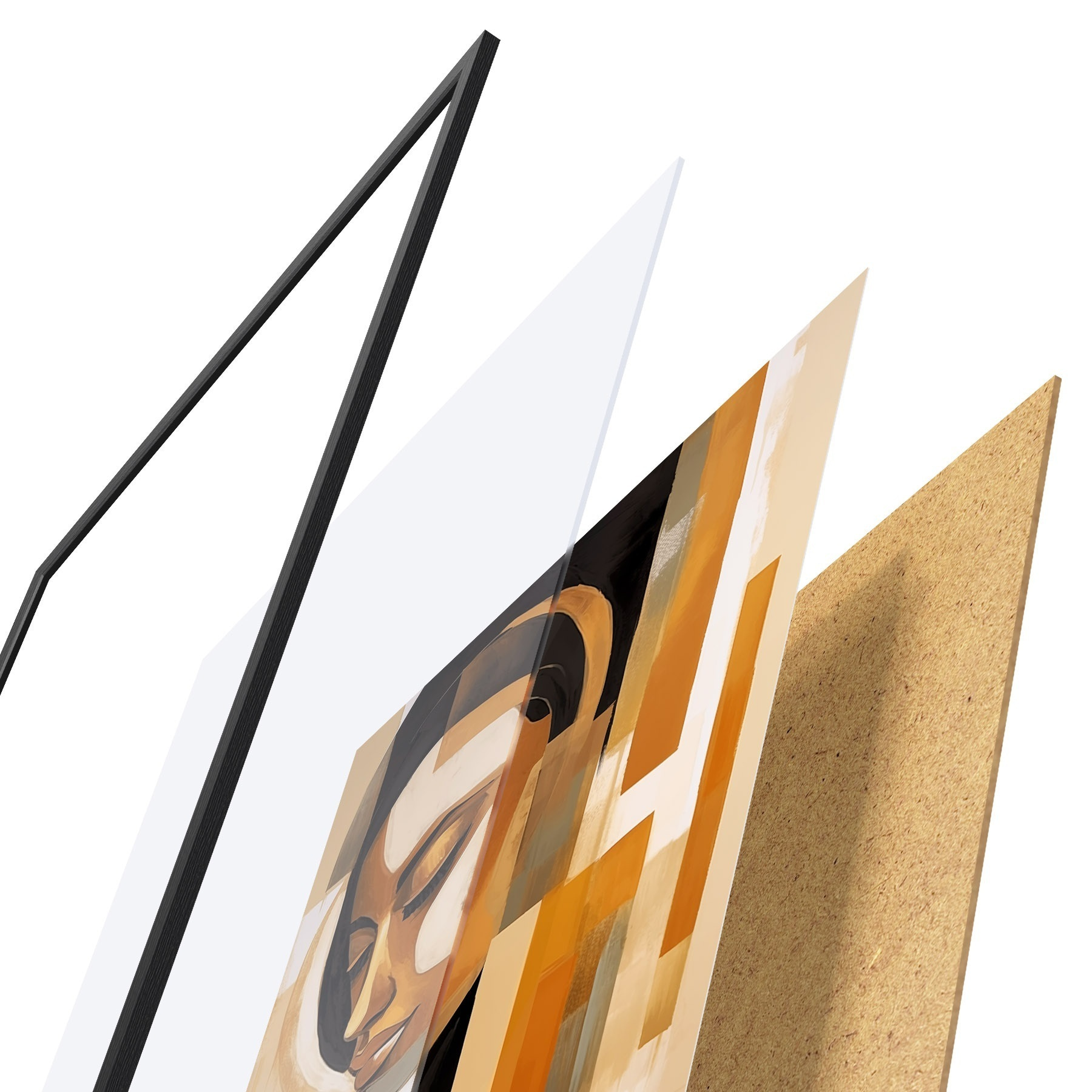 Plakat składa się z ramy, pleksi, wydrukowanego obrazu i podkładu z płyty wiórowej. Plakat można natychmiast zawiesić na ścianie dzięki uchwytom z tyłu.