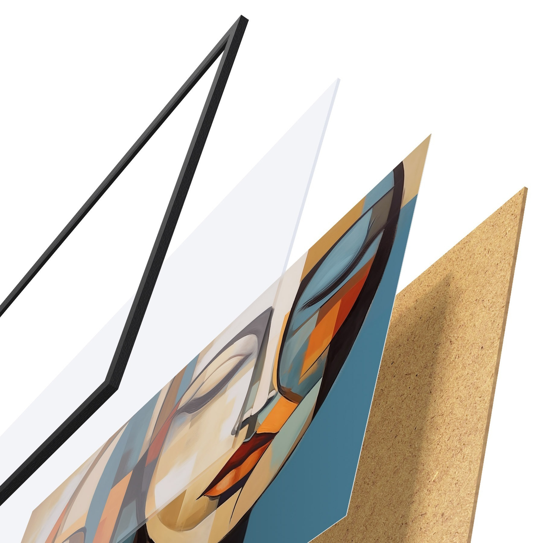 Plakat składa się z ramy, pleksi, wydrukowanego obrazu i podkładu z płyty wiórowej. Plakat można natychmiast zawiesić na ścianie dzięki uchwytom z tyłu.