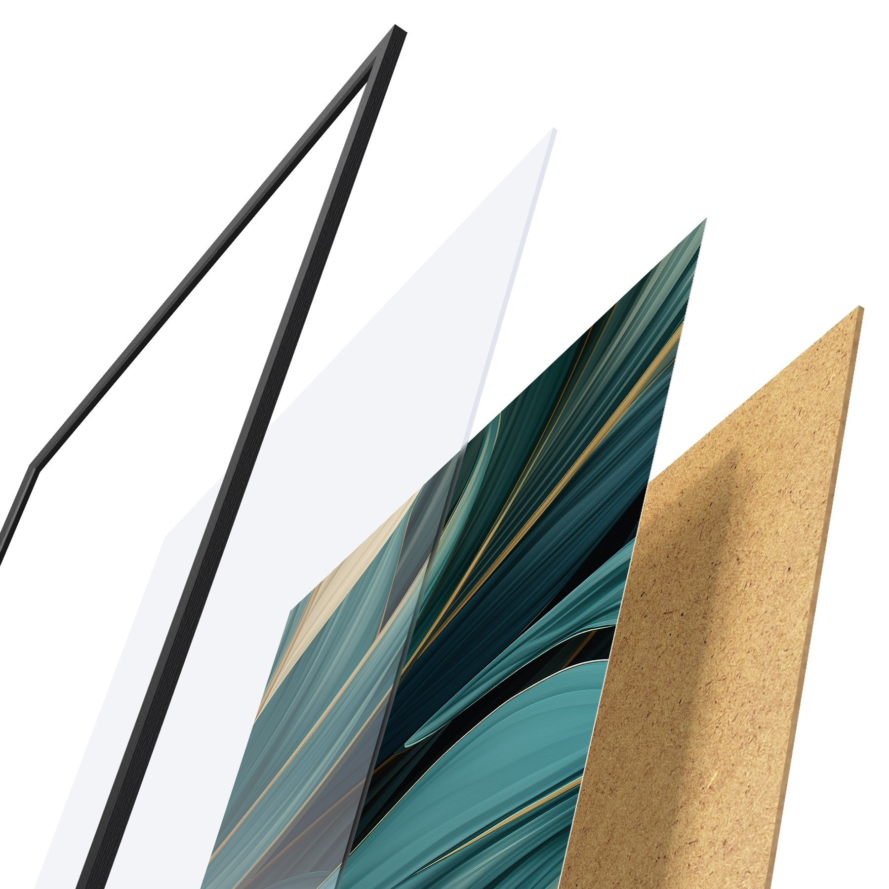 Plakat składa się z ramy, pleksi, wydrukowanego obrazu i podkładu z płyty wiórowej. Plakat można natychmiast zawiesić na ścianie dzięki uchwytom z tyłu.