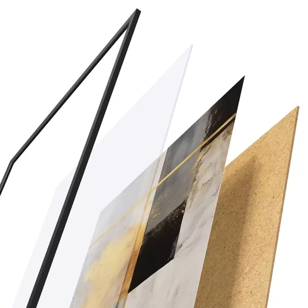 Plakat składa się z ramy, pleksi, wydrukowanego obrazu i podkładu z płyty wiórowej. Plakat można natychmiast zawiesić na ścianie dzięki uchwytom z tyłu.