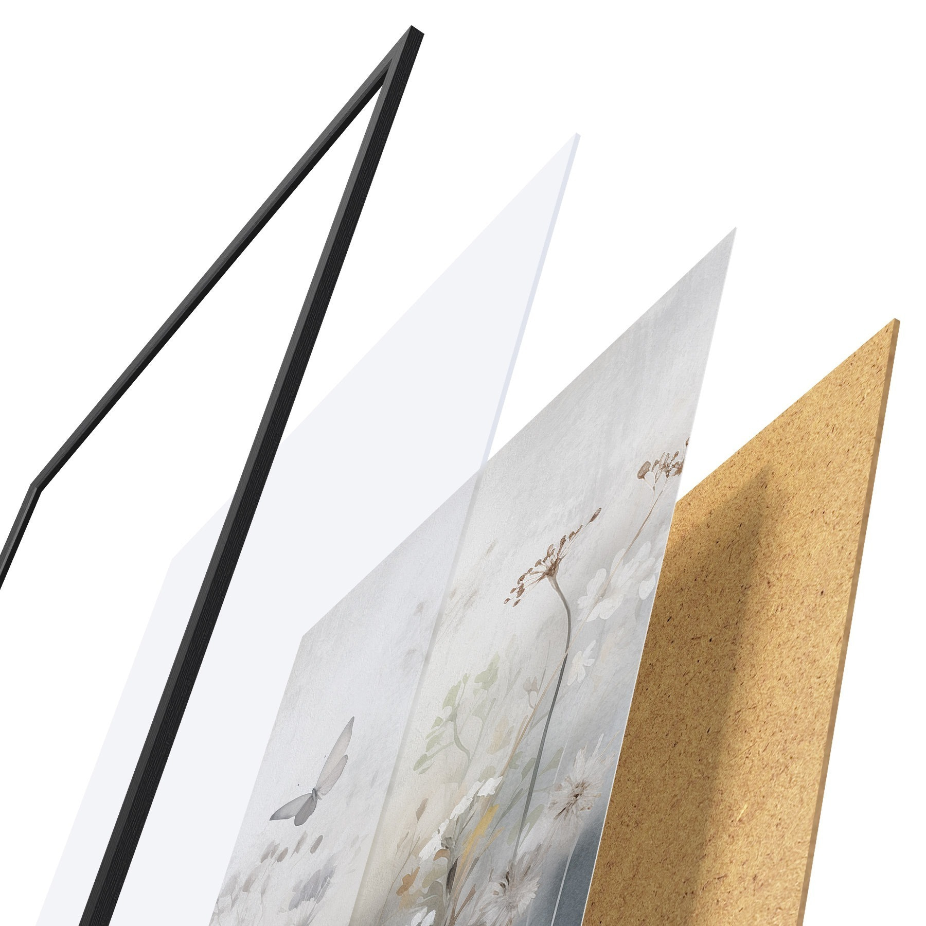 Plakat składa się z ramy, pleksi, wydrukowanego obrazu i podkładu z płyty wiórowej. Plakat można natychmiast zawiesić na ścianie dzięki uchwytom z tyłu.