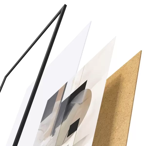 Plakat składa się z ramy, pleksi, wydrukowanego obrazu i podkładu z płyty wiórowej. Plakat można natychmiast zawiesić na ścianie dzięki uchwytom z tyłu.