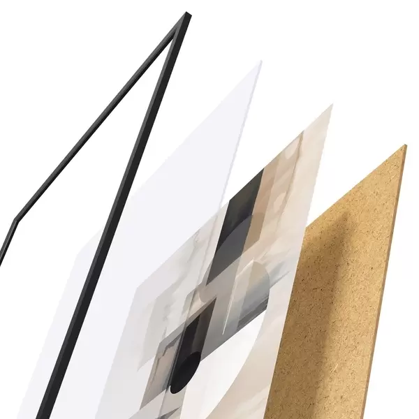 Plakat składa się z ramy, pleksi, wydrukowanego obrazu i podkładu z płyty wiórowej. Plakat można natychmiast zawiesić na ścianie dzięki uchwytom z tyłu.