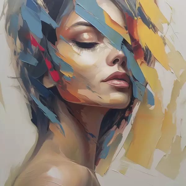 Plakat Abstrakcyjny portret kobiety naśladujący malarstwo f46918