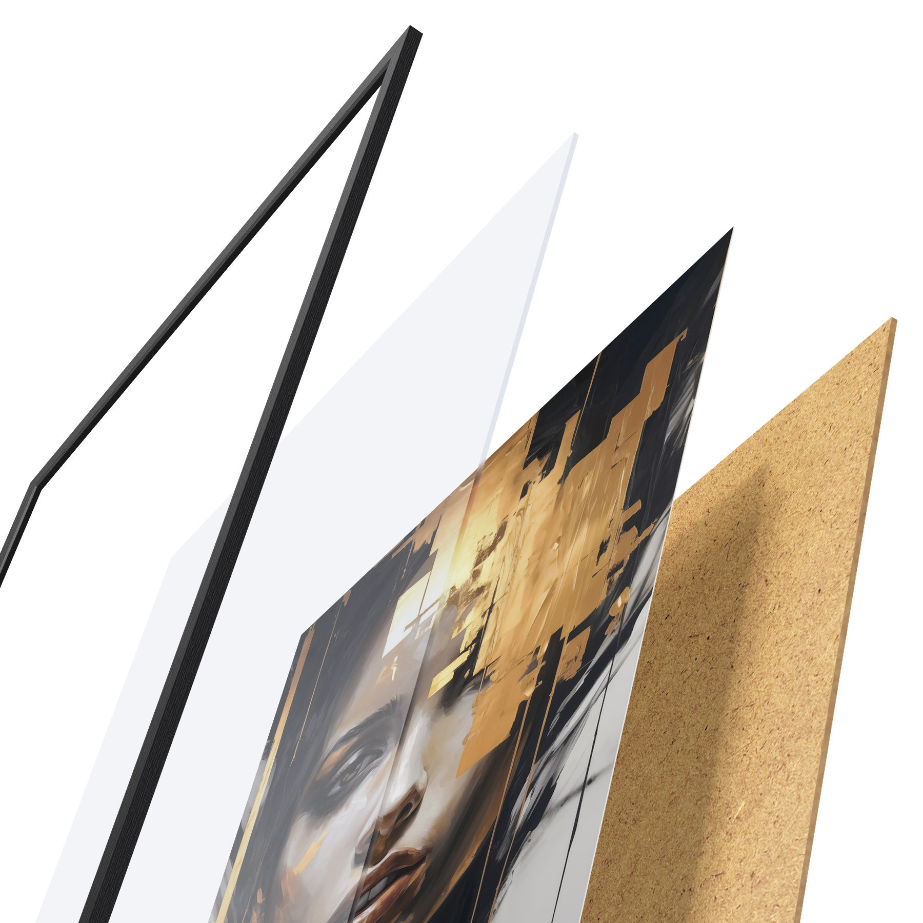 Plakat składa się z ramy, pleksi, wydrukowanego obrazu i podkładu z płyty wiórowej. Plakat można natychmiast zawiesić na ścianie dzięki uchwytom z tyłu.